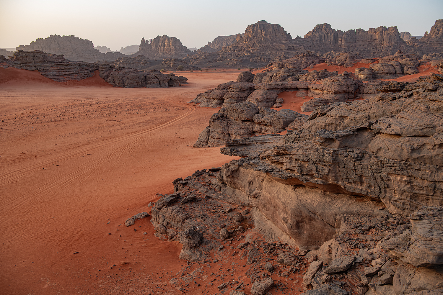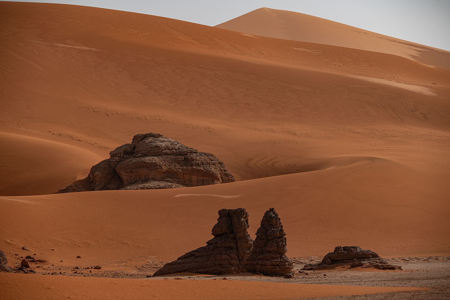 AAAA journey to Algeria presents an opportunity to experience how people once lived in its inviting landscapes, spanning from the North African coast to the spectacular Sahara Desert. From the atmospheric city of Constantine built astride the Rhummel Gorge, it's a short ride through the rolling countryside to the ancient Roman cities of Timgad and Djemila. AAAIn the southeastern corner bordering Libya and Niger is the stunning Tassili n'Ajjer National Park, just one section of the Sahara in the vast Algerian desert. The legacy of the inhabitants of thousands of years ago can be seen in their rock art depicting elephants and giraffes which roamed this once habitable region. Now only the rock pillars and enormous dunes punctuate the desertscape with the hues of the sand changing from gold to red in step with the sun's journey.