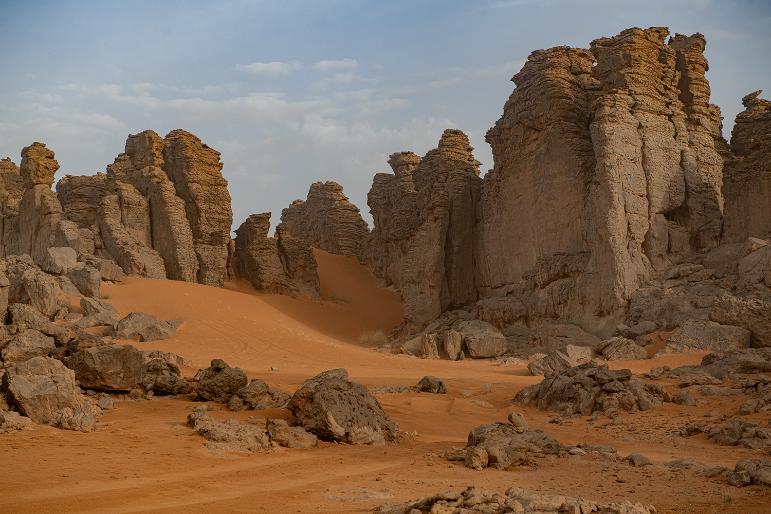 AAAA journey to Algeria presents an opportunity to experience how people once lived in its inviting landscapes, spanning from the North African coast to the spectacular Sahara Desert. From the atmospheric city of Constantine built astride the Rhummel Gorge, it's a short ride through the rolling countryside to the ancient Roman cities of Timgad and Djemila. AAAIn the southeastern corner bordering Libya and Niger is the stunning Tassili n'Ajjer National Park, just one section of the Sahara in the vast Algerian desert. The legacy of the inhabitants of thousands of years ago can be seen in their rock art depicting elephants and giraffes which roamed this once habitable region. Now only the rock pillars and enormous dunes punctuate the desertscape with the hues of the sand changing from gold to red in step with the sun's journey.